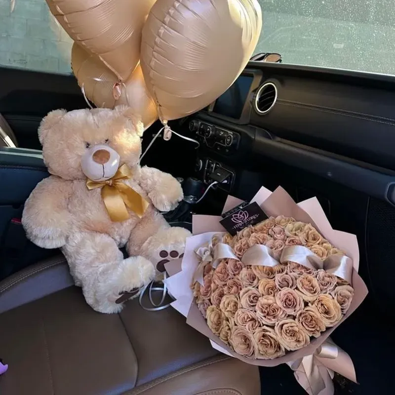 Peluche (segun la disponibilidad) Ramo Buchon de rosas eternas (el color es elegible) Globos