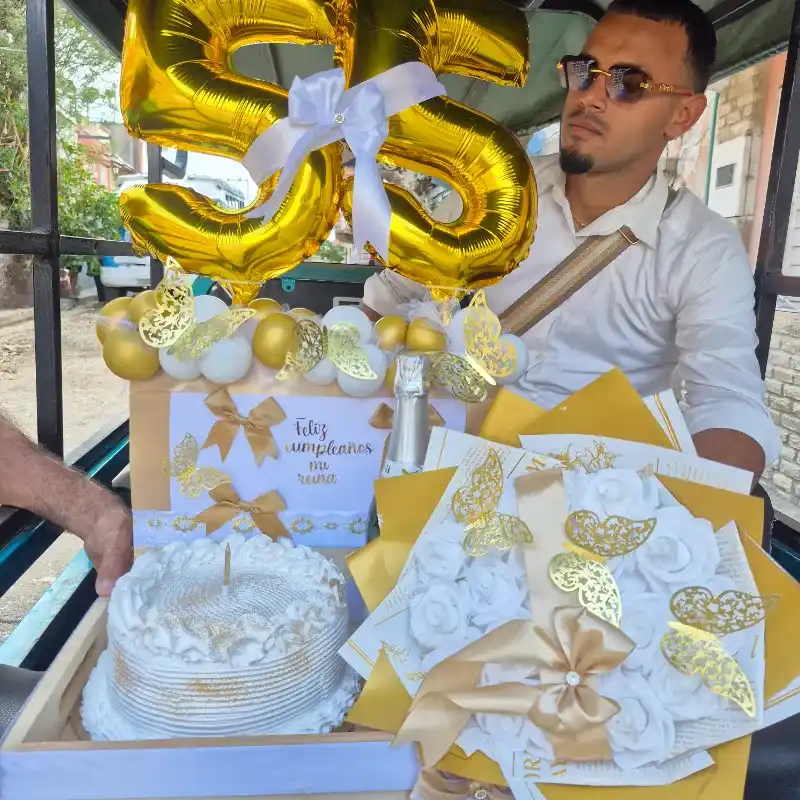 Bandeja con decoracion perzonalizada Globos de números Fondo perzonalizado Cake Ramo de rosas eternas Botella