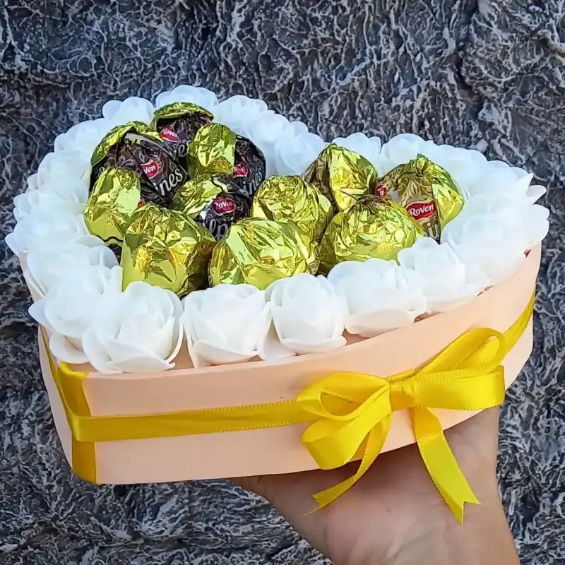 El arreglo incluye de 20-25 rositas de foami, 10 bombones, mariposas decorativas. 📌 Personalizable al gusto del cliente 📌 Si usted desea bombones Ferrero Rocher el precio varia.