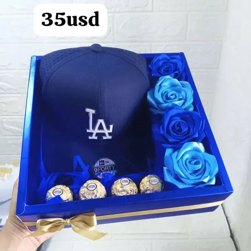Caj con flores , gorra y bombones ferrero