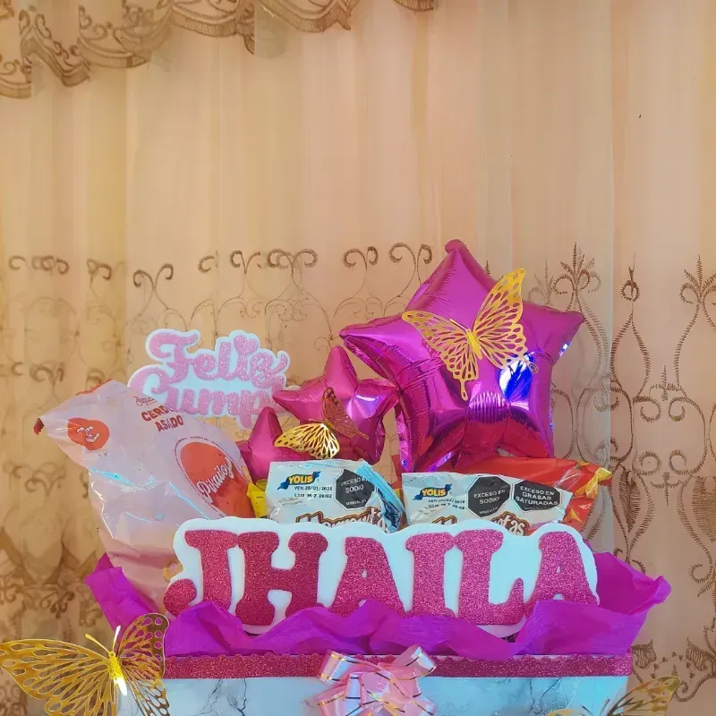 Se incluye confituras y tematica de su gusto asi como personalizacion desde color forma y contenido nombres numeros etc