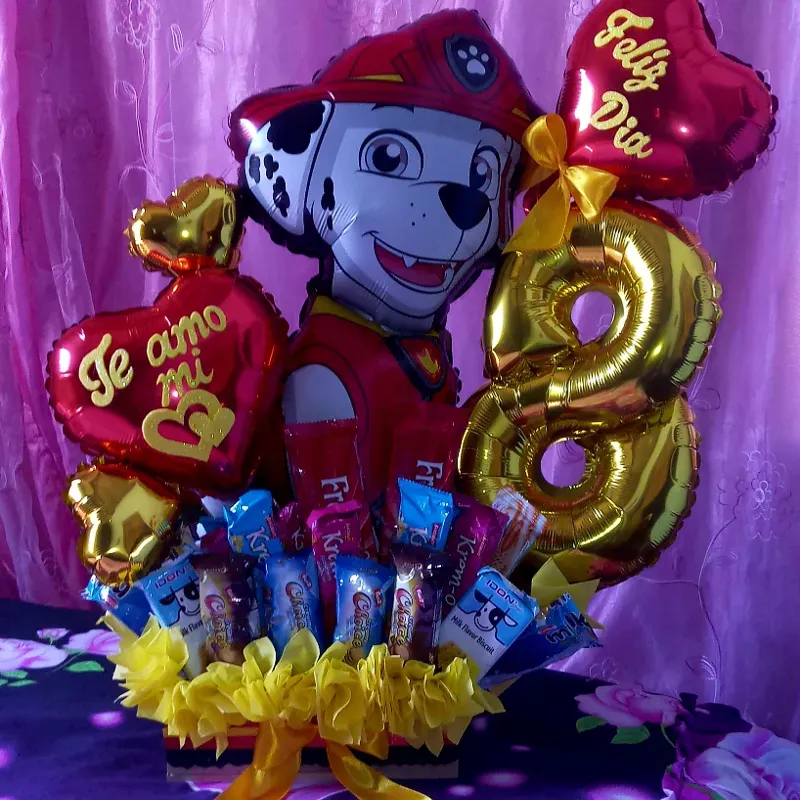 Caja de madera decorada Silueta de animado realista 2 corazones de 10 pulgadas 2 corazones de 5 pulgadas 1 globo de numero de 16 pulgadas (En caso q sean 2 numeros se le aumentan 500 ) 20 confituras variadas 5500 💵