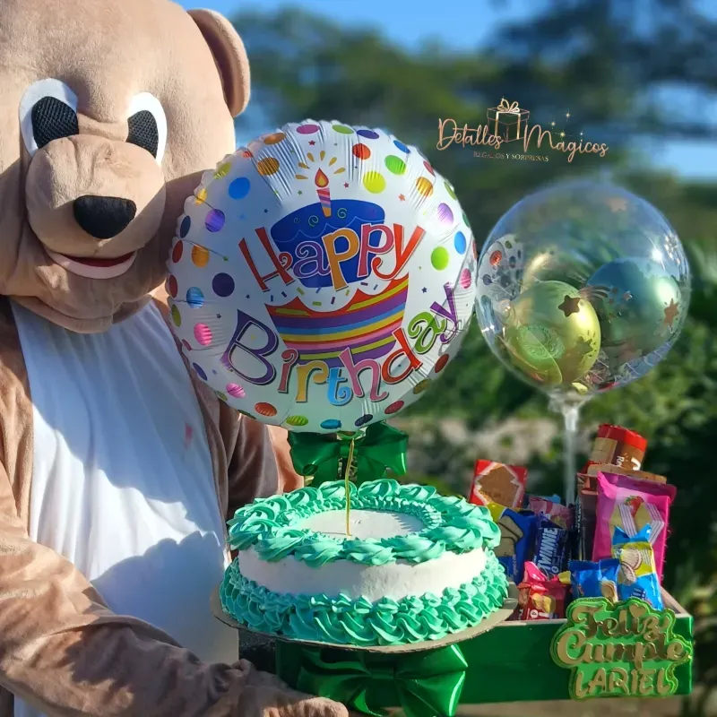 Caja de regalo personalizada ,pastel y confituras al gusto ,con el oso del amor .