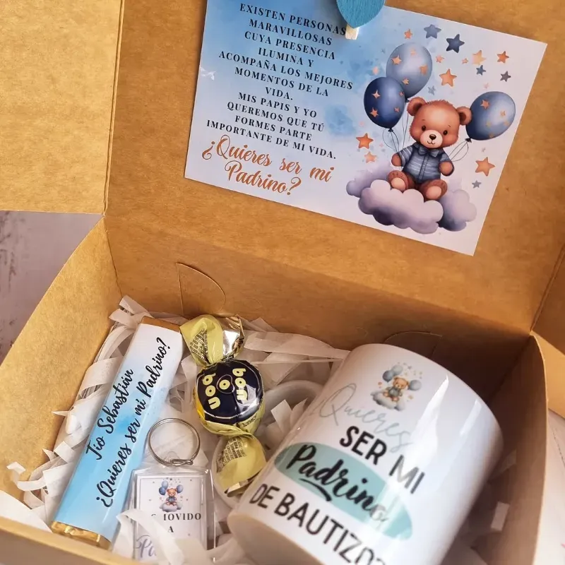 Caja con tarjeta dedicada Jarra personalizada Bombón Llavero (personalizado de acrílico blanco ó transparente) Chocolate con etiqueta personalizada