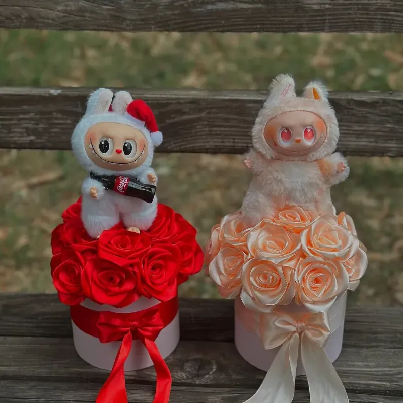Peluche Labubu sorpresa 20 rosas eternas( color deseado) Lazo