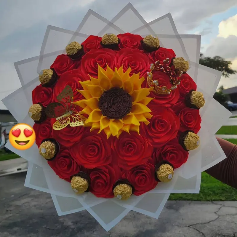 Girasol 20 Rosas ( color a elección) 12 bombones ferrero Corona Mariposas