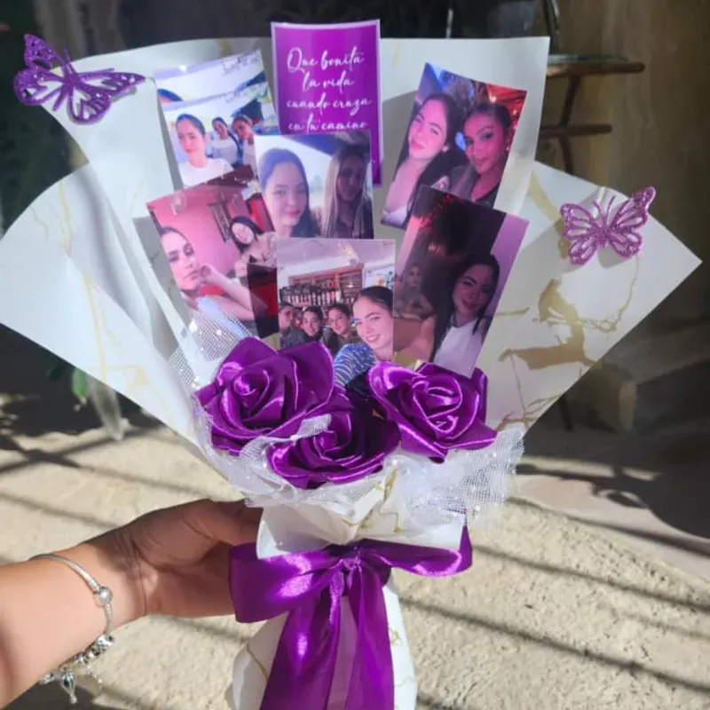 Ramo de 3 Rosas eternas y 7 fotos.