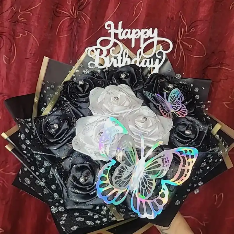 Ramo de 10 Rosas abiertas con brillo , temática de feliz cumpleaños