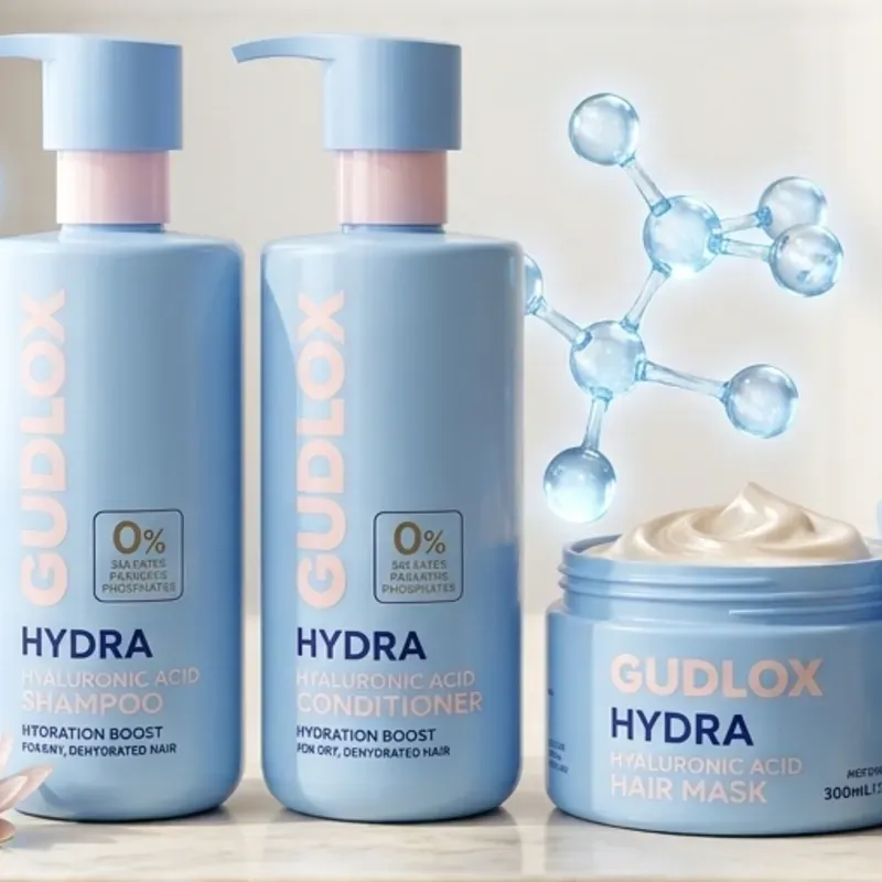 La línea Gudlox Hydra está diseñada específicamente para proporcionar una hidratación profunda y restaurar el brillo en cabellos secos o deshidratados. Su ingrediente estrella es el ácido hialurónico, conocido por su capacidad de atraer y retener la humedad en la fibra capilar, mejorando la elasticidad y suavidad sin apelmazar el cabello