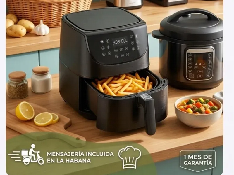 Equipa tu cocina con lo último en tecnología 🍳. Desde freidoras de aire y ollas multipropósito hasta batidoras de alta potencia ⚡. Calidad garantizada para hacer tu vida más fácil. Mensajería GRATIS en La Habana 🚚 y garantía técnica en cada equipo ✅."