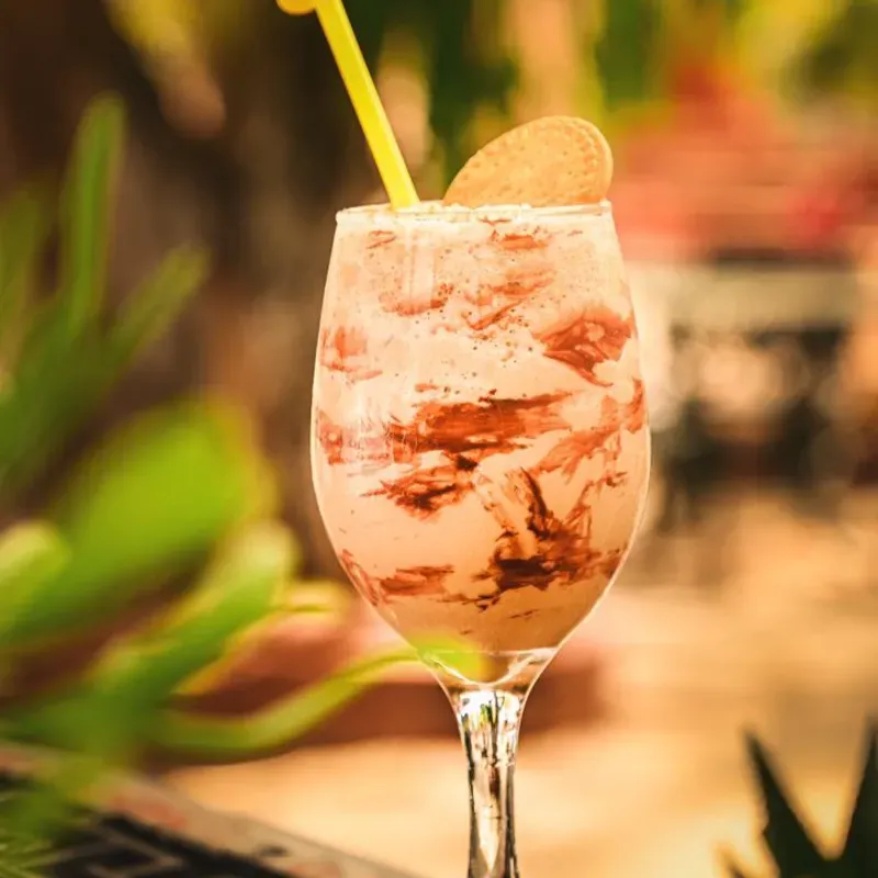 Café frío frapeado con una base de helado de chocolate y leche condensada.