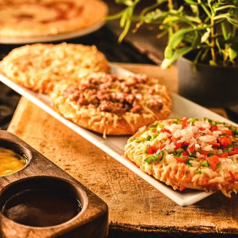Tres pizzas pequeñas de diferentes sabores, horneadas al carbón. Perfecta para los indecisos. 300g