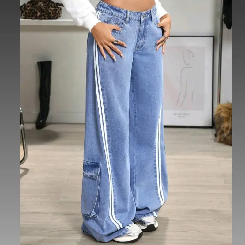 Eleva tu estilo diario con este jeans cargo en azul claro, donde cada detalle lateral marca la diferencia.