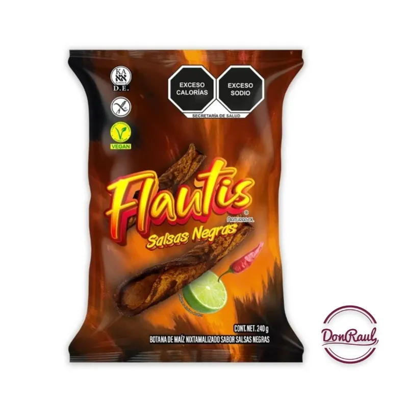 Botana de maíz nixtamalizado con sabor a salsas negras