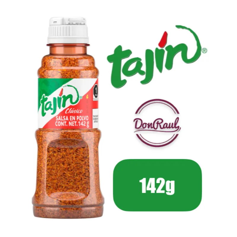Tajín Clásico es un picante en polvo 100% natural. Su sabor es único y tiene renombre mundial. Es una mezcla de siete chiles, sal de mar y limón deshidratado que resalta el sabor de la comida. Es el ingrediente perfecto para realzar el sabor de la fruta, verduras, bebidas y cualquier alimento.