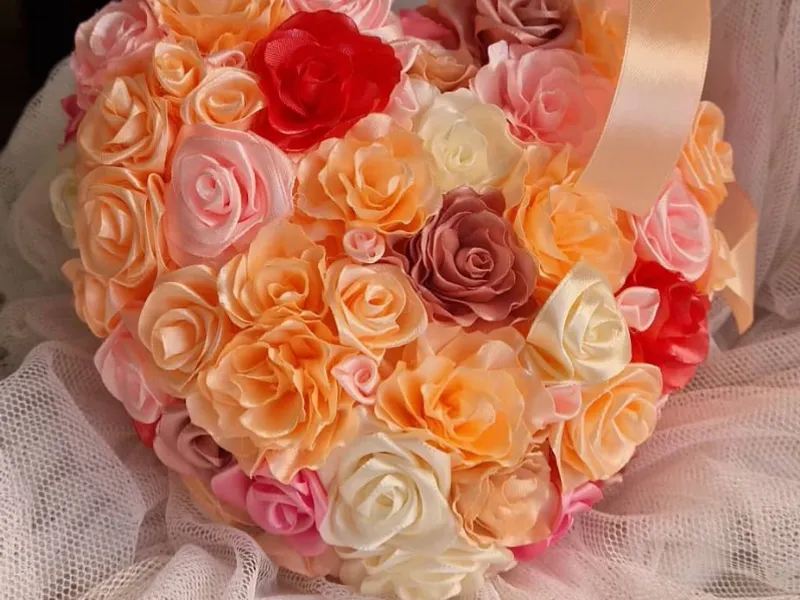 Bouquet compuesto por 23 rosas en tonos rosados, elaboradas a mano con cinta de tela de satén, decoradas con detalles en perlas y tela de tul, que aportan ligereza visual y estabilidad estructural. Diseñado para quinceañeras, novias modernas o eventos especiales, este arreglo destaca por su estilo atrevido, femenino y de temporada, ideal para quienes buscan un toque romántico con personalidad. Las flores son duraderas, no requieren mantenimiento y conservan su forma y color gracias a los materiales de alta calidad.