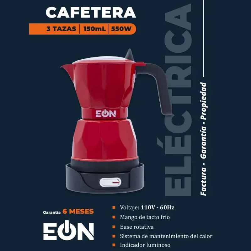 CAFETERA 3 TAZAS ELÉCTRICA EÓN ROJA (FAD)