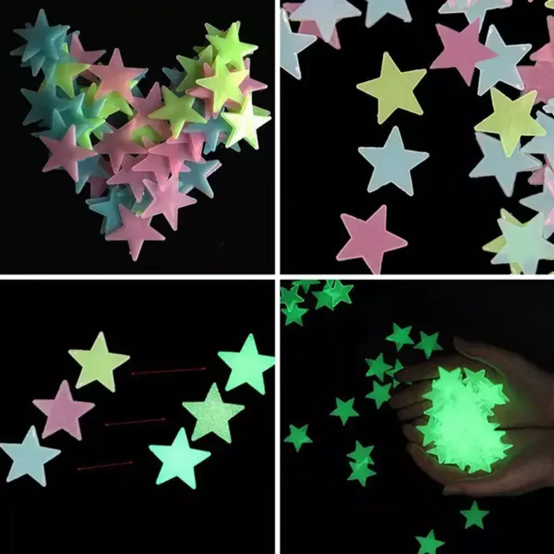1. Preparación: Recibe un paquete con 100 estrellas de 3 cm cada una, ideales para pegar en el techo o la pared.