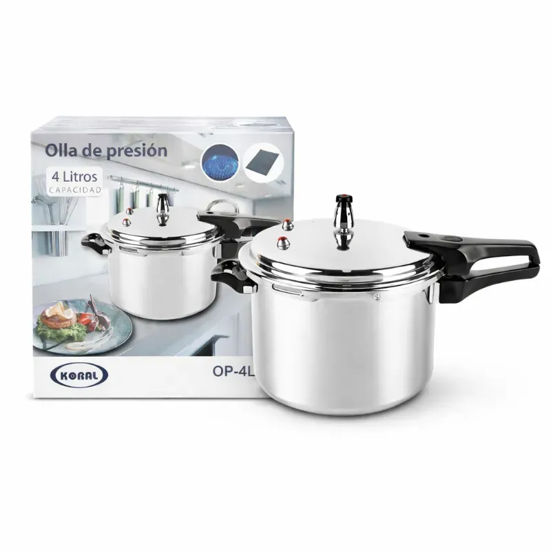 Marca: KORAL Modelo: OP-4L Garantía: 1 mes Envío por costo adicional CARACTERÍSTICAS: ➡️ Especificaciones Técnicas: - Capacidad: 4 Litros - Material de fabricación: Aluminio - Tipo de base: Base especial para inducción ➡️ Compatibilidad: - Cocina de Inducción - Cocina de Gas - Hornilla Eléctrica - Cocina Infrarrojo ➡️ Sistema de Seguridad: - Diseñada con 3 válvulas de seguridad para una máxima protección: - Válvula de sobrepresión: Regula la presión interna para evitar accidentes. - Cierre hermético: Garantiza que la presión se mantenga dentro de la olla durante la cocción. ➡️ Beneficios Clave: - Rápida: Cocina los alimentos en mucho menos tiempo. - Segura: Múltiples sistemas de seguridad para total confianza. - Versátil: Funciona en cualquier tipo de cocina. - Eficiente: Ahorra energía y preserva los nutrientes de los alimentos.