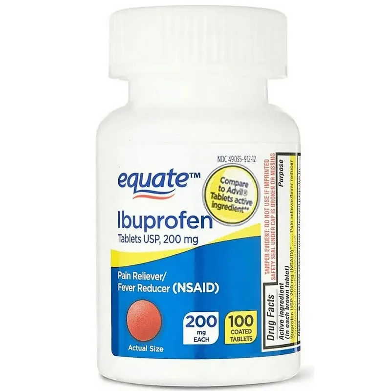 Cuando los dolores corporales te agobian, las tabletas de ibuprofeno Equate pueden brindarte el alivio inmediato que necesitas para retomar tu día. El ibuprofeno es ideal para tratar molestias leves como dolores de cabeza, dolores musculares, dolor de muelas, cólicos menstruales y más. También funciona como un eficaz reductor de fiebre. Una sola pastilla puede aliviar el dolor durante todo el día. Equate Pain Relief es comparable a Advil. Un frasco contiene 100 unidades, unidad con 200 mg de ibuprofeno. Este producto está destinado a ser utilizado por adultos y niños mayores de 12 años. Tomar las decisiones correctas en materia de salud puede ser un reto. Con una gama completa de productos y soluciones sencillas, Equate te permite cuidar de tu familia con confianza. ✅ Alivia dolores musculares, dolores leves de artritis, dolor de cabeza, dolor de muelas, dolor de espalda, resfriado común, cólicos menstruales y más. ✅ También funciona como antipirético. ✅ Una sola pastilla puede aliviar el dolor durante todo el día. ✅ Botella de 100 unidades ✅ comprimidos de 200 mg ✅ Comprimidos recubiertos ✅ Para adultos y niños de 12 años o más Detener las indicaciones de uso Deje de usarlo y consulte a un médico si. ■ experimenta cualquiera de los siguientes signos de sangrado estomacal:. ■ sentirse débil. ■ vomitar sangre. ■ tiene heces negras o con sangre. ■ tiene dolor de estómago que no mejora. ■ el dolor empeora o dura más de 10 días. ■ la fiebre empeora o dura más de 3 días. ■ aparece cualquier síntoma nuevo. ■ hay enrojecimiento o hinchazón en el área dolorosa Dosificación No tome más de lo indicado. Se debe utilizar la dosis eficaz más pequeña. Adultos y niños de 12 años en adelante: tomar 1 comprimido cada 4 a 6 horas mientras persistan los síntomas. Si el dolor o la fiebre no mejoran con 1 tableta, se pueden usar 2 tabletas. No exceda de 6 comprimidos en 24 horas, a menos que lo indique un médico. Niños menores de 12 años: consulte con un médico Instrucciones. ■ no tome más de lo indicado. ■ se debe utilizar la dosis eficaz más pequeña. ■ adultos y niños de 12 años y más: tomar 1 comprimido cada 4 a 6 horas mientras persistan los síntomas. ■ si el dolor o la fiebre no mejoran con 1 tableta, se pueden usar 2 tabletas. ■ no exceda de 6 comprimidos en 24 horas, a menos que lo indique un médico. ■ niños menores de 12 años: consultar a un médico. Empuje hacia abajo y gire EVIDENCIA DE MANIPULACIÓN: NO LO USE SI EL SELLO DE SEGURIDAD IMPRESO DEBAJO DE LA TAPA ESTÁ ROTO O FALTA. ADVERTENCIAS. ALERTA DE ALERGIA: El ibuprofeno puede provocar una reacción alérgica grave, especialmente en personas alérgicas. Los síntomas pueden incluir:. ■ urticaria. ■ hinchazón facial. ■ asma (sibilancias). ■ shock. ■ enrojecimiento de la piel. ■ erupción. ■ ampollas. Si se produce una reacción alérgica, suspenda su uso y busque ayuda médica de inmediato. SANGRADO ESTOMACAL ADVERTENCIA: Este producto contiene un AINE que puede causar sangrado estomacal severo. La probabilidad es mayor si:. ■ tiene 60 años o más. ■ ha tenido úlceras estomacales o problemas de sangrado. ■ tomar un anticoagulante o un esteroide. ■ tomar otros medicamentos que contengan AINE con o sin receta [aspirina, ibuprofeno, naproxeno u otros]. ■ tomar 3 o más bebidas alcohólicas todos los días mientras usa este producto. ■ tomar más o durante más tiempo del indicado. NO UTILIZAR. ■ si alguna vez ha tenido una reacción alérgica a cualquier otro analgésico/reductor de fiebre. ■ justo antes o después de una cirugía cardíaca. CONSULTE A UN MÉDICO ANTES DE USAR SI. ■ tiene antecedentes de problemas estomacales, como acidez de estómago. ■ está tomando un diurético. ■ usted tiene asma. ■ la advertencia de sangrado estomacal se aplica a usted. ■ tiene presión arterial alta, enfermedad cardíaca, cirrosis hepática o enfermedad renal. ■ tiene problemas o efectos secundarios graves por tomar analgésicos o antifebriles. SI ES ASÍ, CONSULTE A UN MÉDICO O FARMACÉUTICO ANTES DE USAR. ■ bajo el cuidado de un médico por cualquier condición grave. ■ tomar aspirina para un ataque cardíaco o un derrame cerebral, porque el ibuprofeno puede disminuir este beneficio de la aspirina. ■ tomando cualquier otro medicamento. AL UTILIZAR ESTE PRODUCTO. ■ tomar con comida o leche si se produce malestar estomacal. ■ el riesgo de ataque cardíaco o derrame cerebral puede aumentar si usa más de lo indicado o durante más tiempo de lo indicado. EN CASO DE EMBARAZO O LACTANCIA consultar a un profesional de la salud antes de su uso. Es especialmente importante no usar ibuprofeno durante los últimos 3 meses del embarazo, a menos que un médico lo indique definitivamente, porque puede causar problemas en el feto o complicaciones durante el parto. MANTENER FUERA DEL ALCANCE DE LOS NIÑOS. En caso de sobredosis, busque ayuda médica o comuníquese con un Centro de control de intoxicaciones de inmediato.