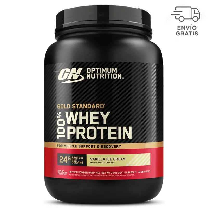 Gold Standard 100% Whey Protein 2 lbWhey Gold Standard ¡la fórmula de proteína más vendida! * Promueve el desarrollo de la masa muscular * Aumenta la definición de los músculos * Protege la musculatura * Mejora la recuperación Información Nutricional ----------------------------------- Cantidad neta: 1.98 lbs (900 g) Tamaño toma: 1 Dosificador (33 g) Tomas por envase: Aprox. 29 Modo de empleo: Como suplemento nutricional, tomar de 1 a 3 batidos al día, el primero en ayunas, uno después del entrenamiento y entre las comidas, distribuidos a lo largo del día. ////////////////////////////////////////////////////////////////// Telef: +53 52491385 - +53 58032094 - +53 55660661 ////////////////////////////////////////////////////////////////// ¿Por qué Gold Standard 100% Whey™? * Producto enriquecido con 24 g de proteína de alta calidad por porción para ayudar a desarrollar la musculatura. * El aislado de proteína de suero de leche (APSL) es el ingrediente principal con más carbohidratos y grasas “aisladas”. * Contiene 11 g de aminoácidos esenciales de origen natural que favorecen la recuperación muscular. * En cuanto a la calidad proteica, el suplemento GOLD STANDARD® forma parte de más de 2000 millones de recuperaciones de entrenamiento en todo el mundo desde 1998. Durante más de 30 años y en más de 90 países, se ha confiado en OPTIMUM NUTRITION® por proporcionar la más alta calidad en recuperación posentrenamiento, energía preentrenamiento y nutrición deportiva en movimiento. Luego de una cuidadosa selección de proveedores, cada ingrediente se prueba para garantizar una pureza, una potencia y una composición excepcionales. Nos regimos por los más altos estándares de producción, todo para que pueda liberar todo el potencial de su cuerpo. ***** GOLD STANDARD 100% WHEY™ está diseñado para lograr una mezcla y una bebida superiores. ** Aminoácidos de origen natural ‡ Cuando se toma a lo largo del tiempo con entrenamiento de resistencia regular. ***** Otros ingredientes Mezcla de proteínas (aislado de proteína de suero de leche, concentrado de proteína de suero de leche, péptidos de suero de leche), sabores naturales y artificiales, lecitina de soja, acesulfamo de potasio, sucralosa, fd & c amarillo # 5, lactasa. Información sobre alérgenos: Contiene ingredientes de leche y soja (lecitina).50.00 USD