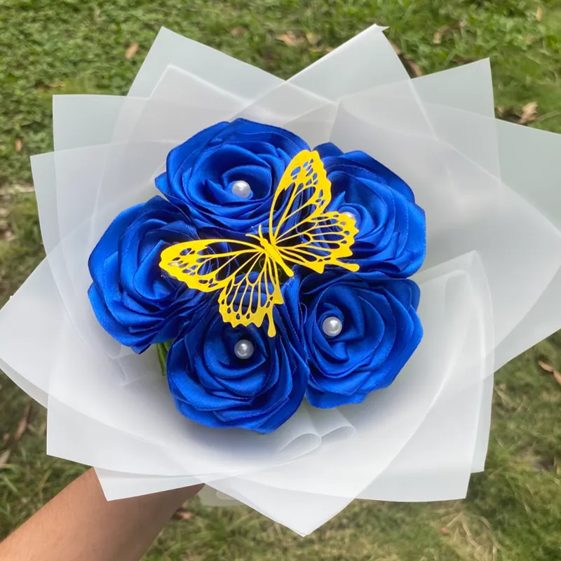 Incluye 5 rosas eternas , 1 mariposa , hojas eternas, perlas y papel coreano