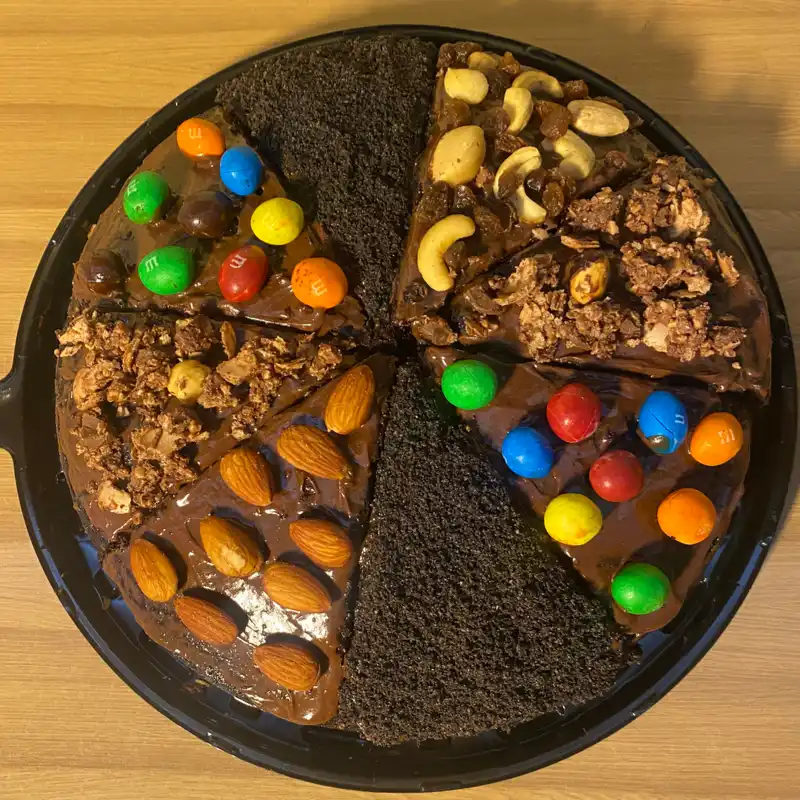 Tarta con panetela de chocolate, cubierta y rellena de ganache 🍫 con agrego de su preferencia. 800 cup la cuña sin agregos, solo rellena y cubierta de ganache! ‼️Agregos disponibles‼️ Oreo 200 cup Ferrero Rocher 400 cup Frutos secos 150 cup Frutos del bosque 200 cup M&M 300 cup Pasitas 150 cup Grajea 100 cup Dulce de leche 120 cup Kit kat 300 cup Pistacho 400 cup ‼️También puede solicitar la tarta completa‼️