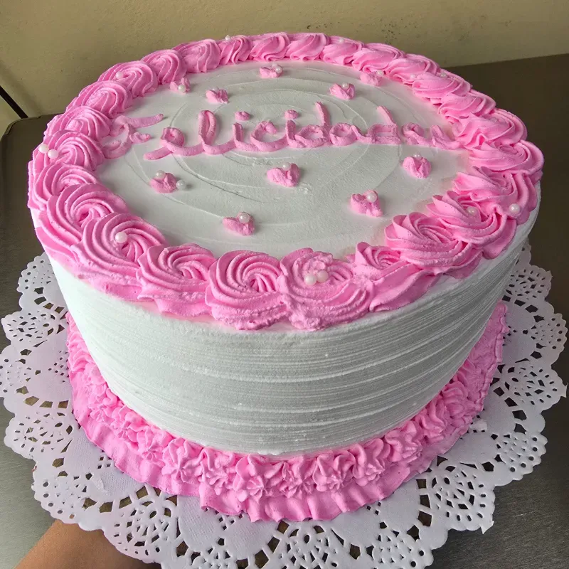 Panetela mojada con almibar y leche condensada , vestida de nata y decoración a gusto del cliente .