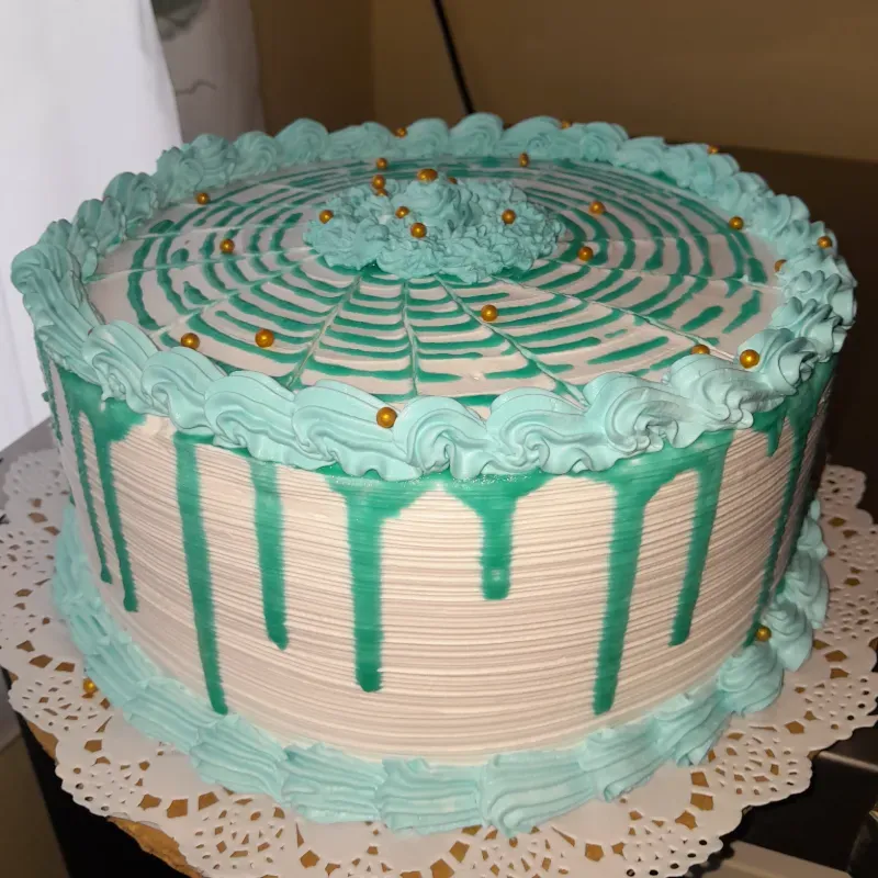 Panetela mojada con almibar , relleno de nutella , decoración a gusto del cliente vestida de nata .