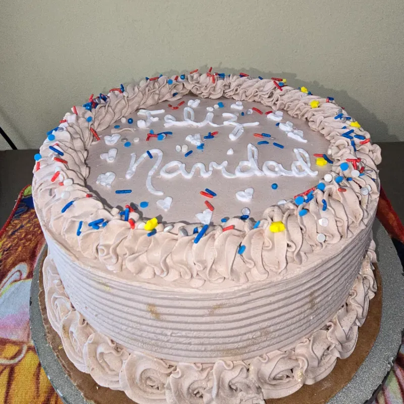 Panetela mojada con almibar y leche condensada , variedad de rellenos , decoración a gusto del cliente y vestida con nata de chocolate .