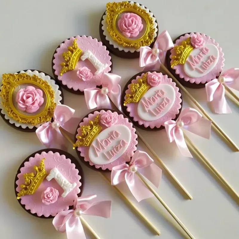 Chocoletas rellenas y bañadas de chocolate blanco personalizadas con decoracion comestible