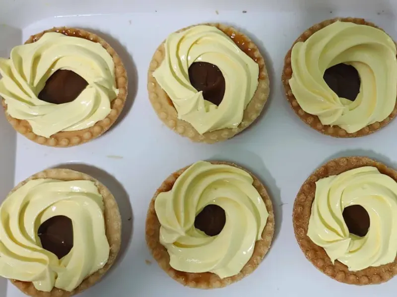 Rellenas de dulce de crema de leche con merengue, la tartaleta es de mantecado