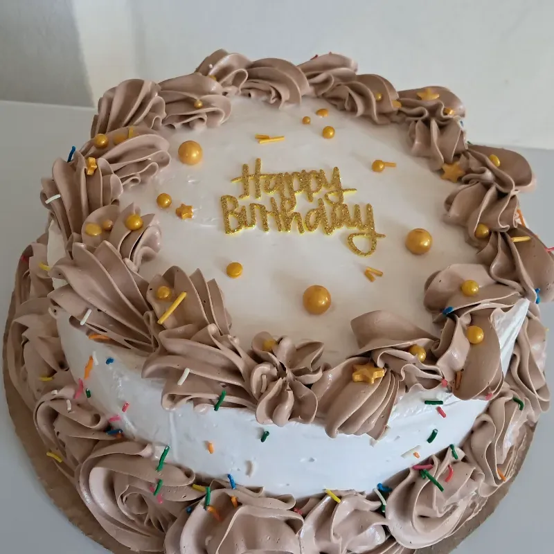 Bizcocho de vainilla bañado en salsa 3 leches de vainilla y decorado con merengue