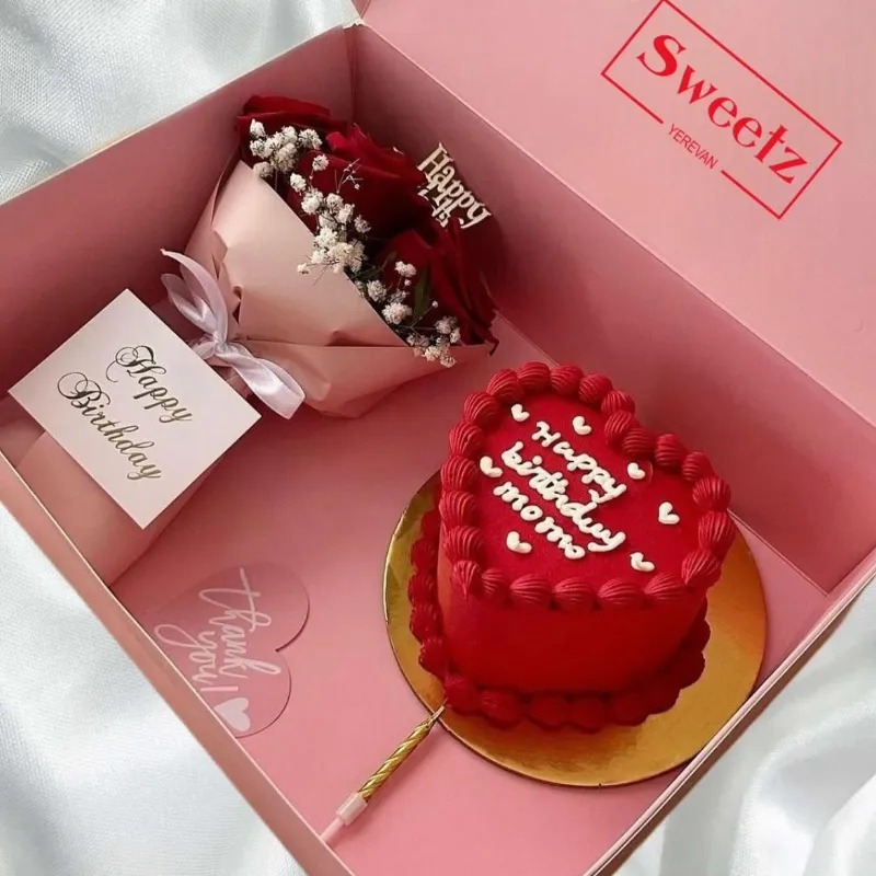 Mini Cake relleno de Jalea de frambuesa Nutella Mousse de limón Mousee de Naranja Fanguito Ramo de 5 rosas eternas