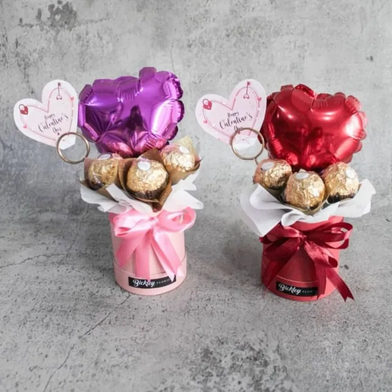 Pequeña cesta circular con 3 Ferreros un globo 5pulgas del color que guste ❤️