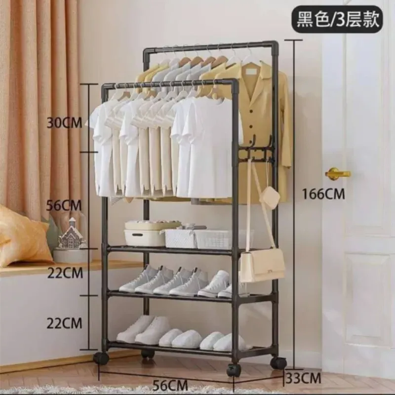 ✅ Organizador 2 en 1 ✅Percha doble con zapatera de 3 niveles y ruedas