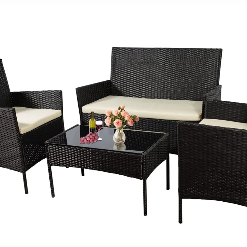 Este conjunto es un juego de muebles de patio de 4 piezas de la marca Milexus ,fabricado con mimbre de polietileno moderno y cojines beige