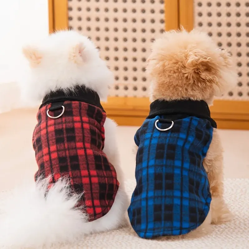 Sudadera de 1 pieza para perro y gato, cálida y sencilla, con patrón de tablero de ajedrez, compatible con correa, para otoño/invierno, adecuada para perros Teddy, Bichón y de tamaño pequeño a mediano. La ropa de verano suele estar hecha de tela; elija según sus necesidades. Los diferentes estilos