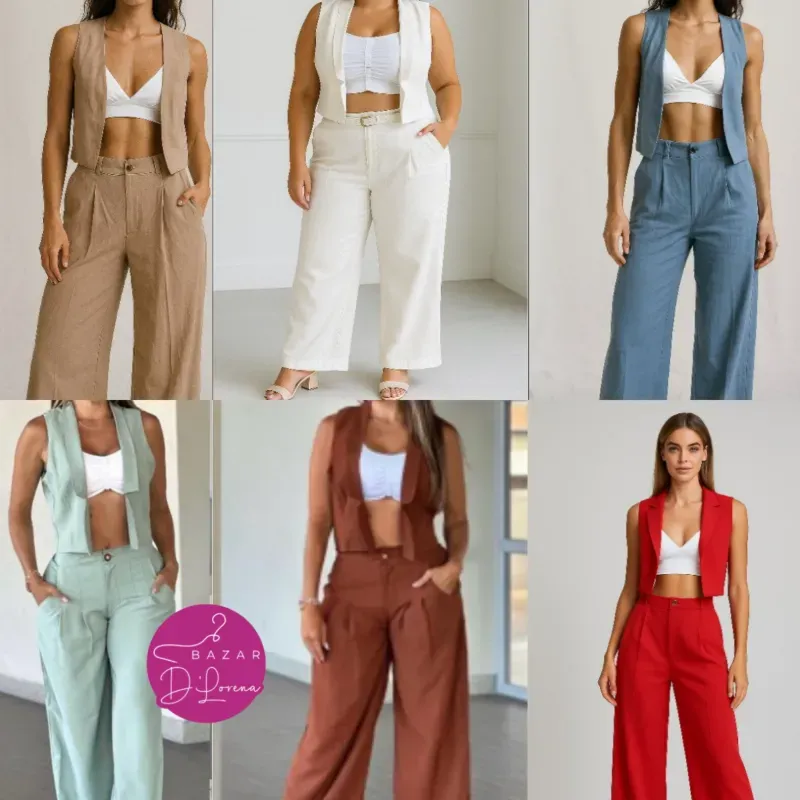 Chaleco, top y pantalón Marrón y azul M Blanco, rojo, beis y verde XL