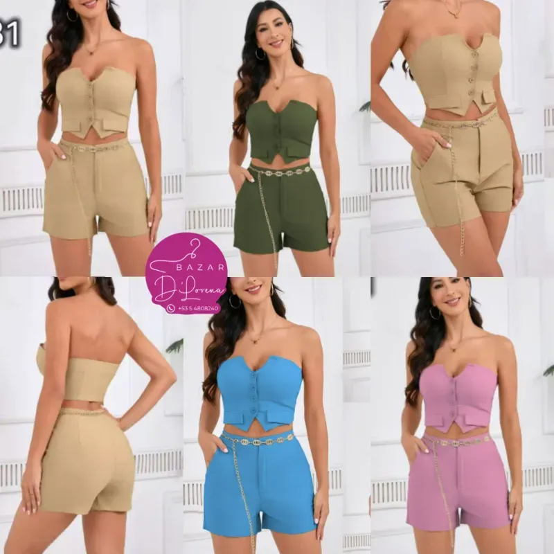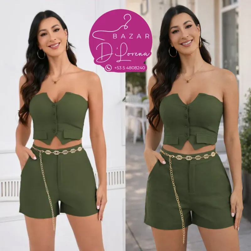 CONJUNTO DE BLUSA, SHORT CON CINTO
