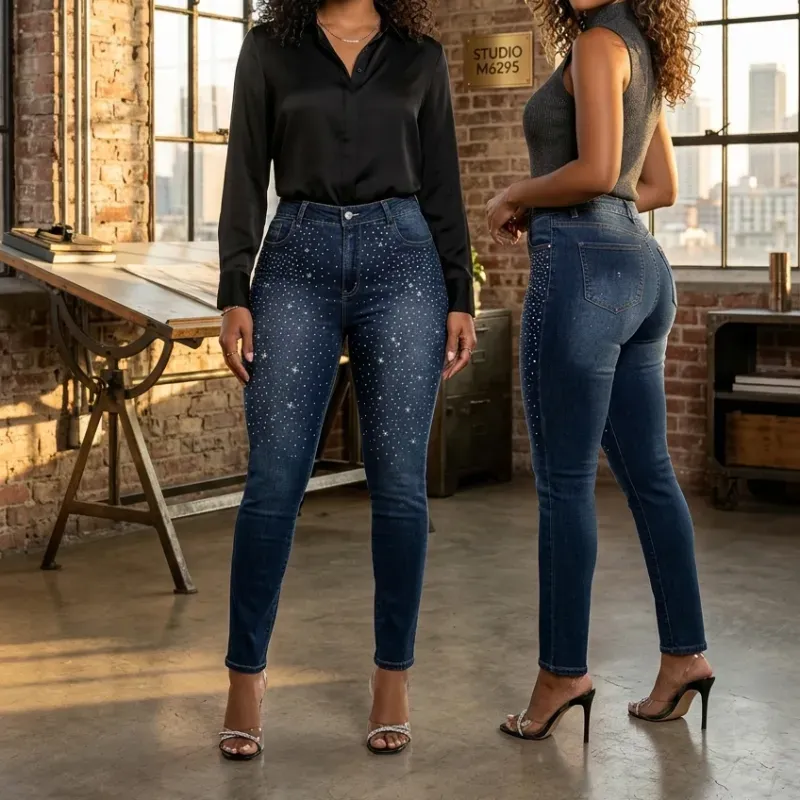 Pantalón de Tiro Alto con Pedrería degradada