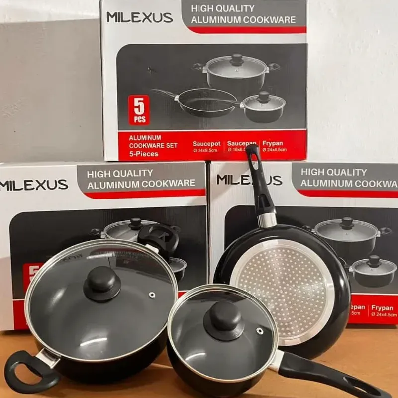 Set de cazuelas marca Milexus, 5 pcs Inducción/Gas/Eléctrico