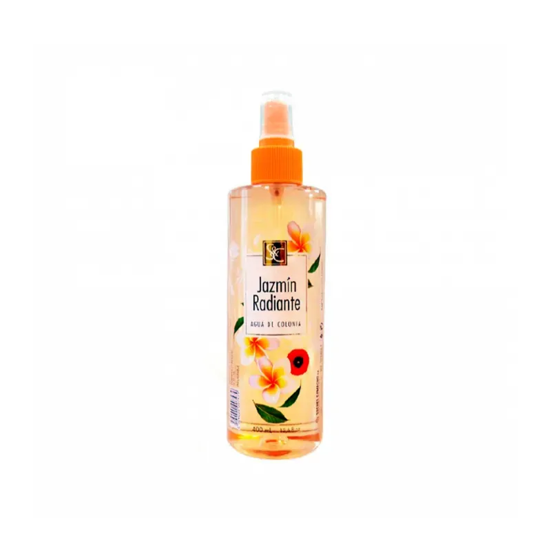 Agua de colonia con fragancia floral de jazmín radiante, en presentación con atomizador.
