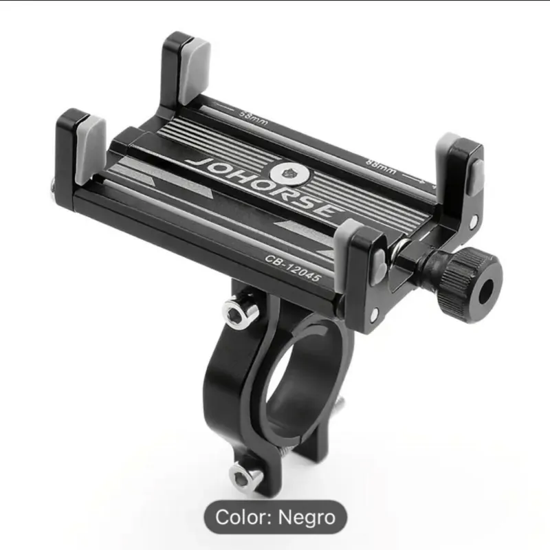 Portacelular de aluminio para bicicleta. Firme, resistente y seguro durante el recorrido.