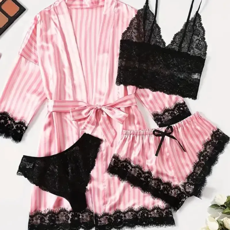 Hermoso set de dormir unitalla le queda de S a la M 4 piezas ⛔️⛔️ no olvides agregar una bolsa de regalo 🎁 😉 👇👇👇