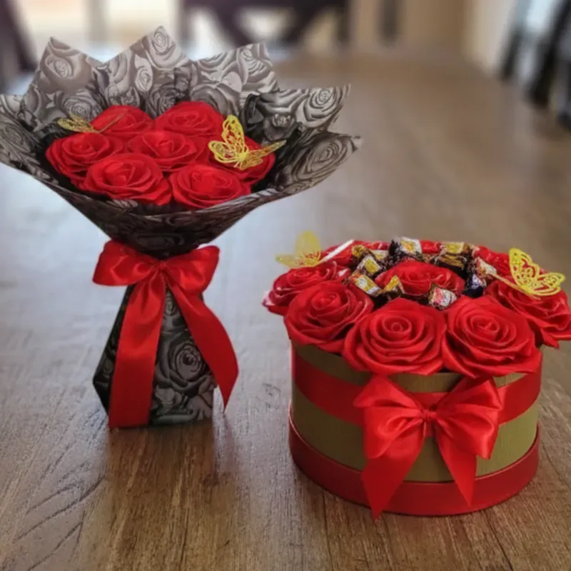 1 Ramo de flores mediano 1 Caja de flores y Bombones mediano