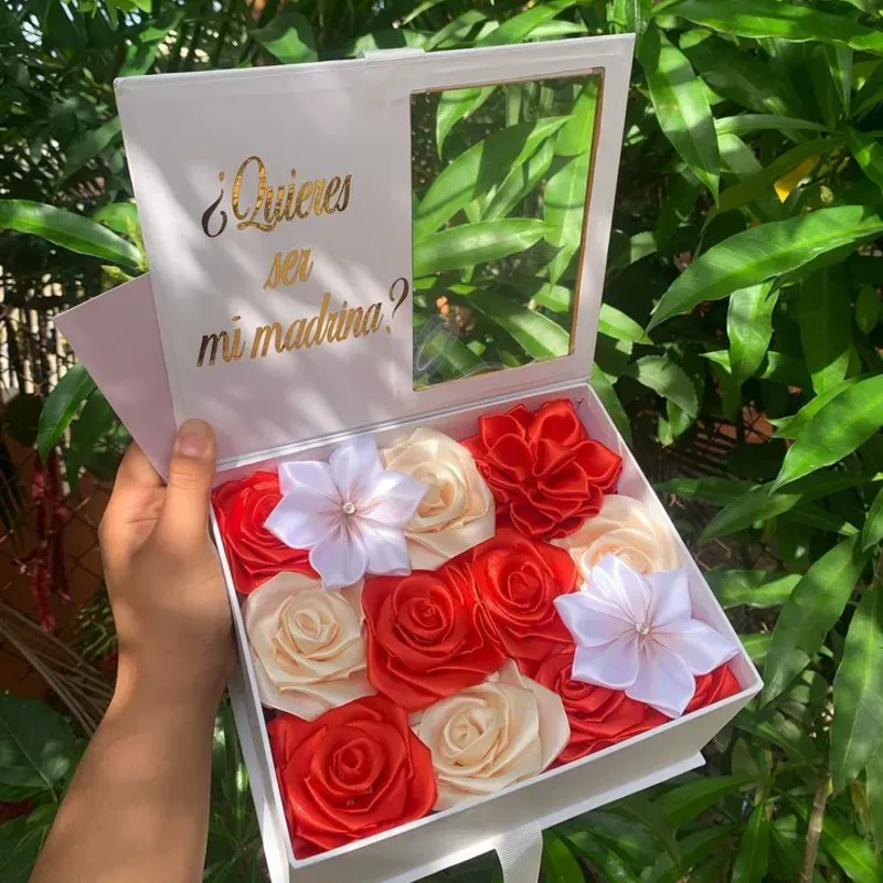 Contiene: - 10 rosas eternas - 2 plumerias - 1 dahlia - Frase personalizada Color a su elección