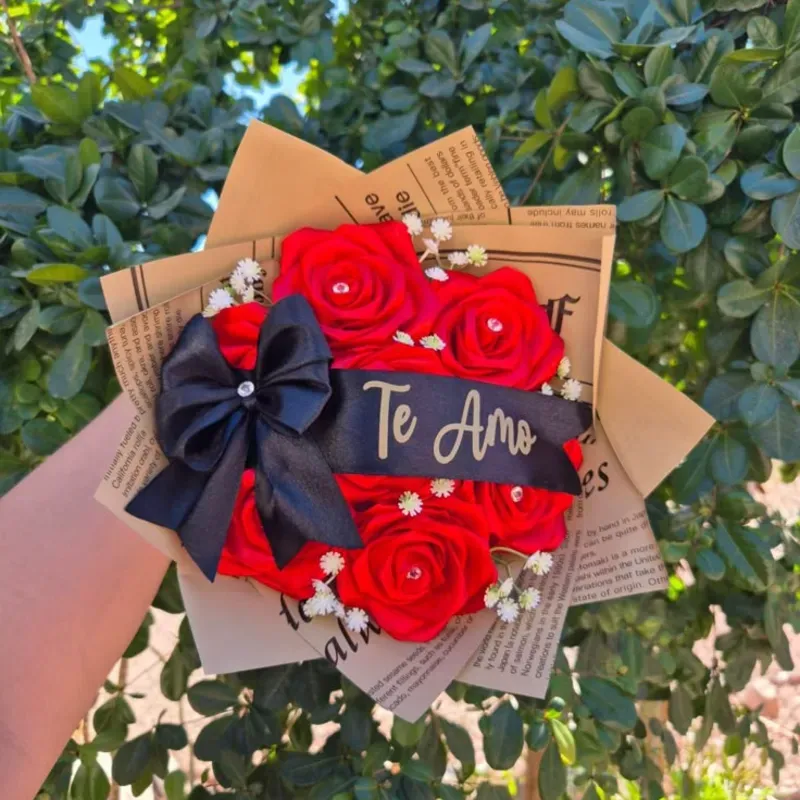 Contiene: - 7 rosas eternas - Lazo -Cinta personalizada Color a su elección