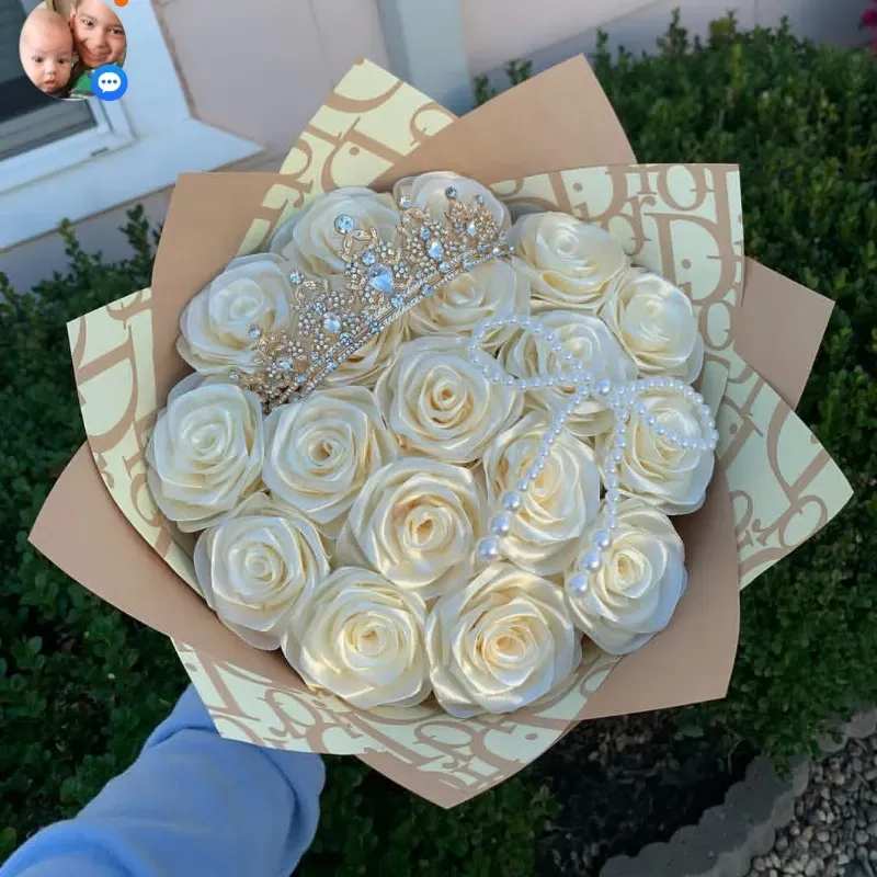 Contiene: -18 rosas eternas (Puede elegir el color) -1 corona. -Lazo de perlas blancas.