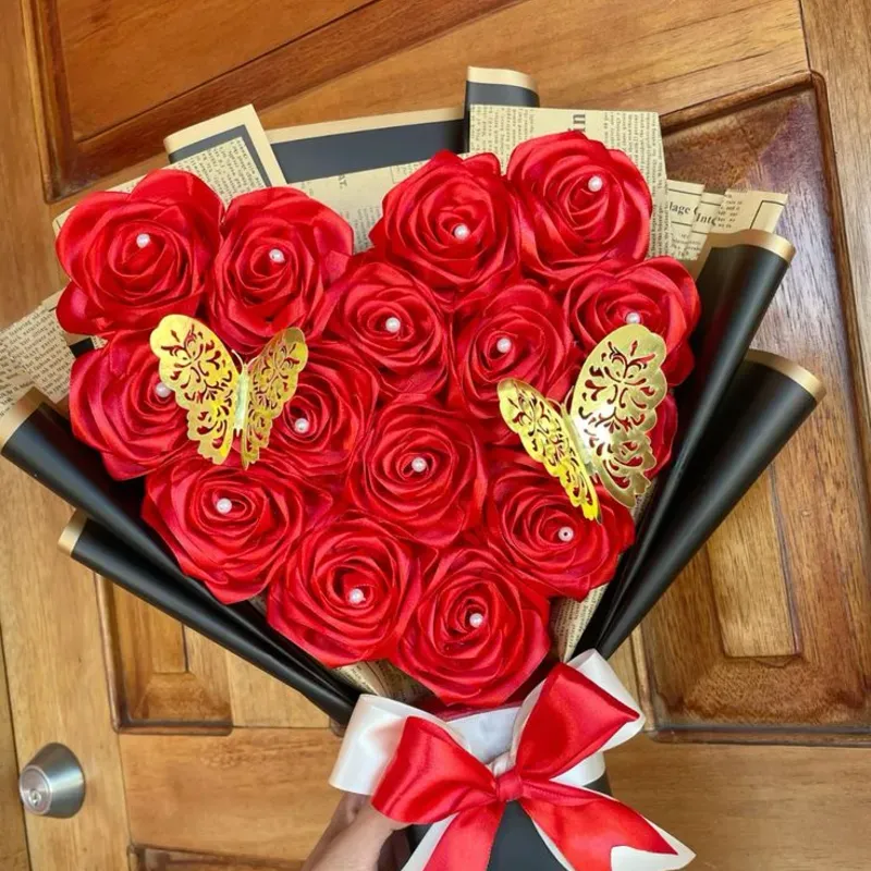 Contiene: -15 rosas eternas -2 mariposas Puede elegir el color de las rosas y el papel para envolver el ramo